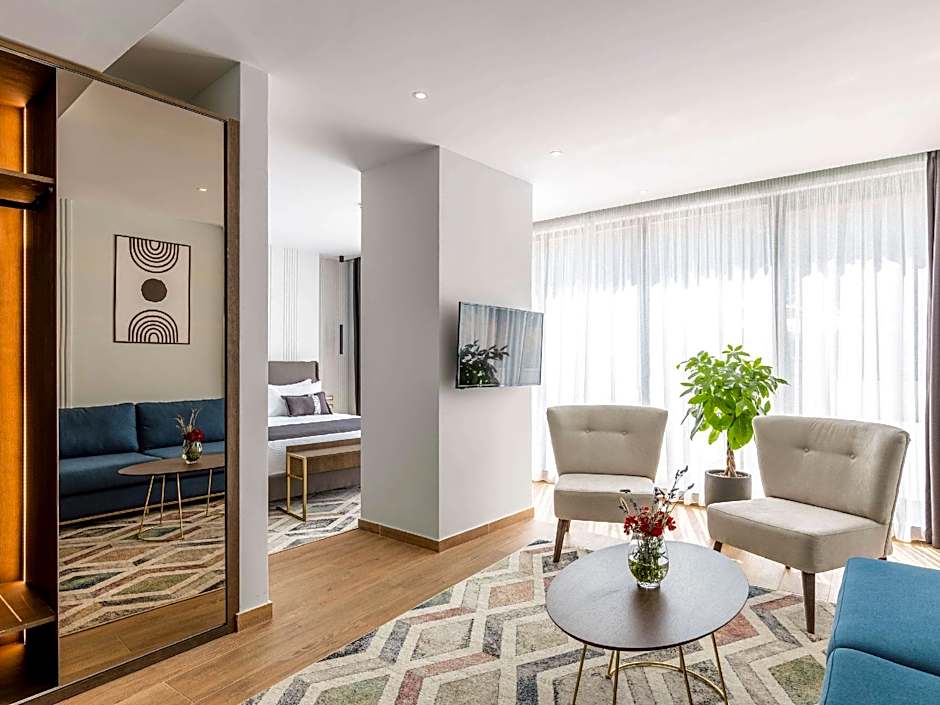 Providing free toiletries and bathrobes, this quadruple room includes a private bathroom with a shower, a bidet and a hairdryer. The spacious air-conditioned quadruple room provides a flat-screen TV with cable channels, soundproof walls, a mini-bar, a tea and coffee maker as well as garden views.